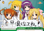 【永】全部其他你的卡名含有「なのは」的角色,賦予『【自】再演[手牌1張角色放到休息室]』。